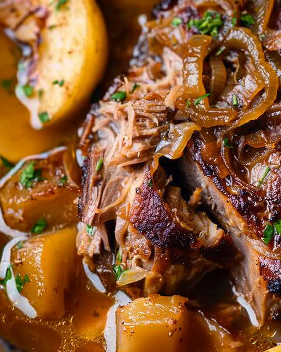 A delicious and easy recipe for Apple Cider Braised Pork Shoulder, perfect for a comforting meal.