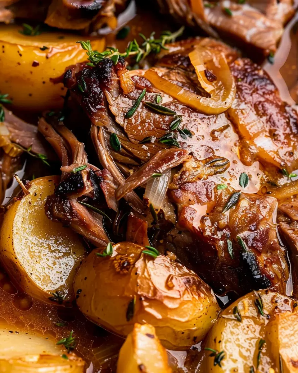 The real magic happens during the cooking phase. You’ll need around 3 hours as the beef shoulder slowly tenderizes in the oven, absorbing the rich flavors of apple cider and herbs. This allows the meat to become melt-in-your-mouth tender, a perfect match for your cozy dinner plans.