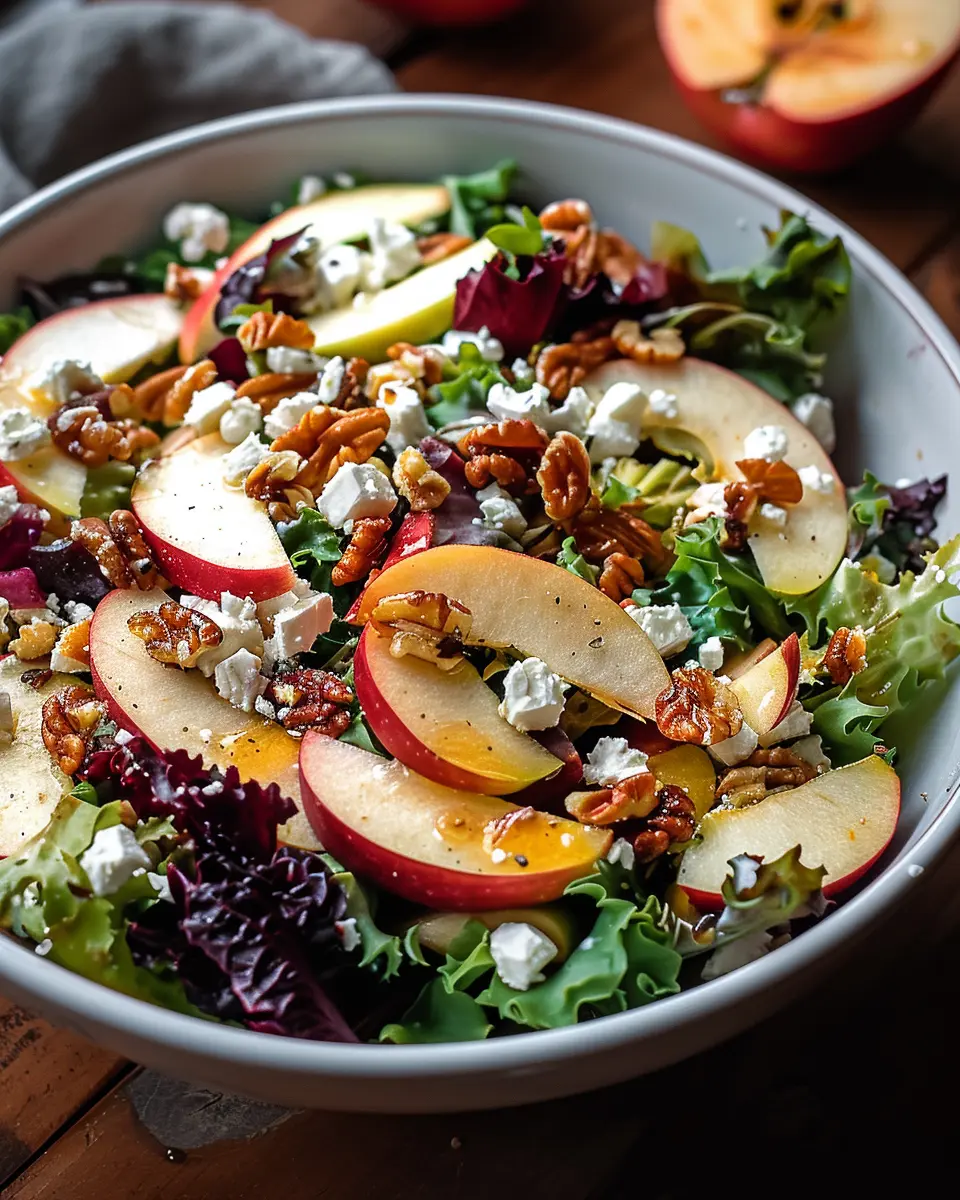 A delicious autumn salad featuring Honeycrisp apples, feta cheese, and crispy turkey bacon.