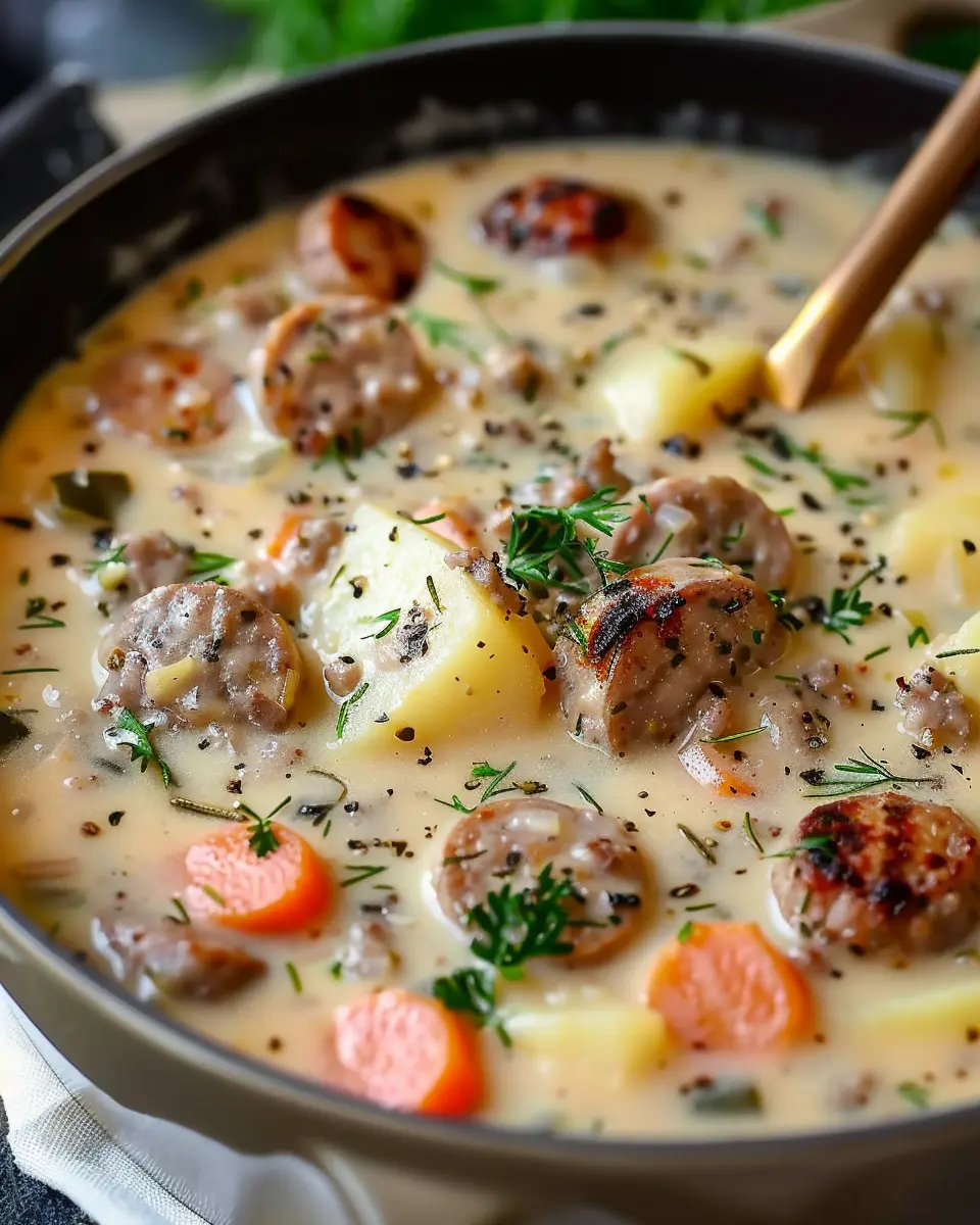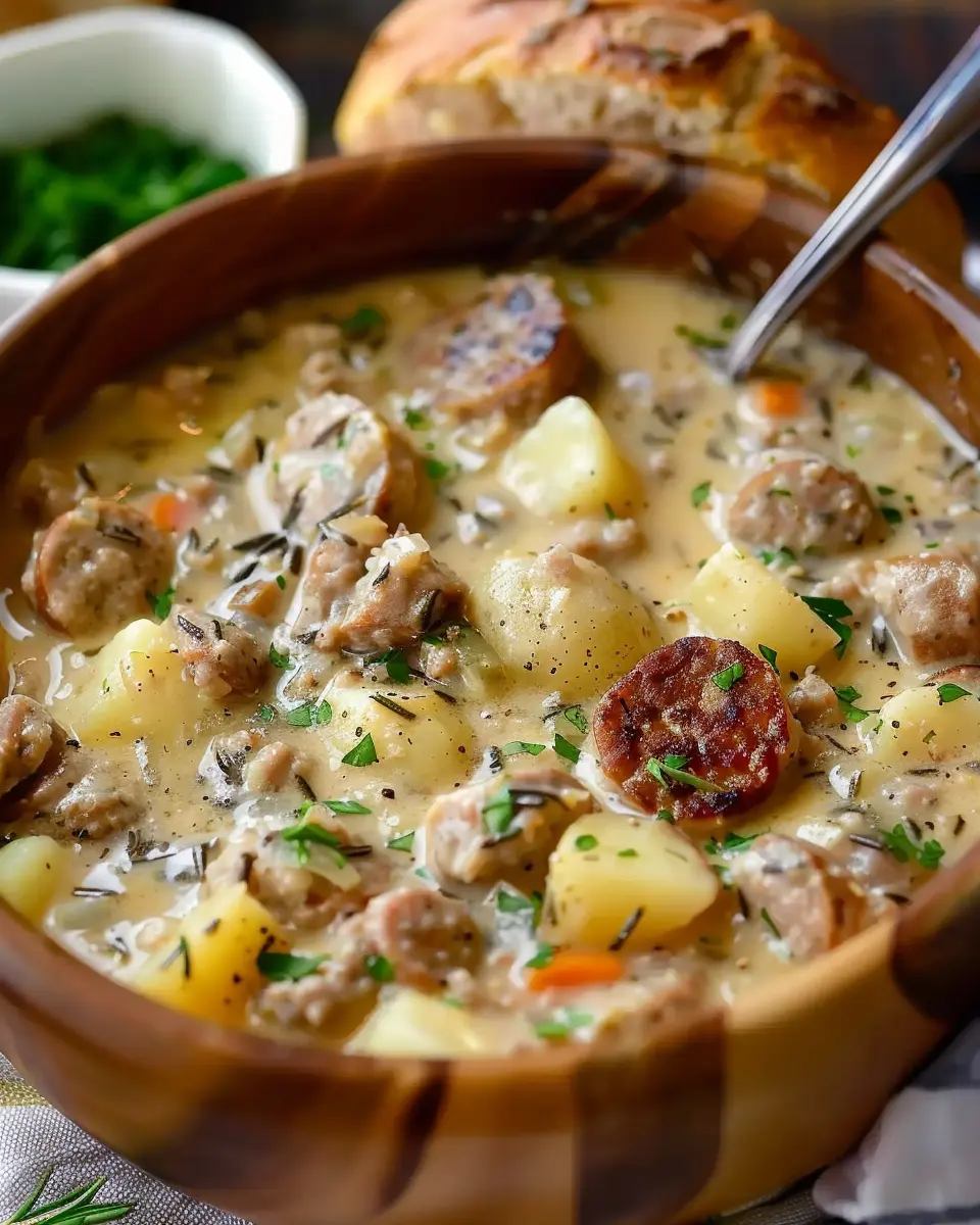 PrintCreamy Sausage Potato Chowder: Cozy Comfort in a Bowl