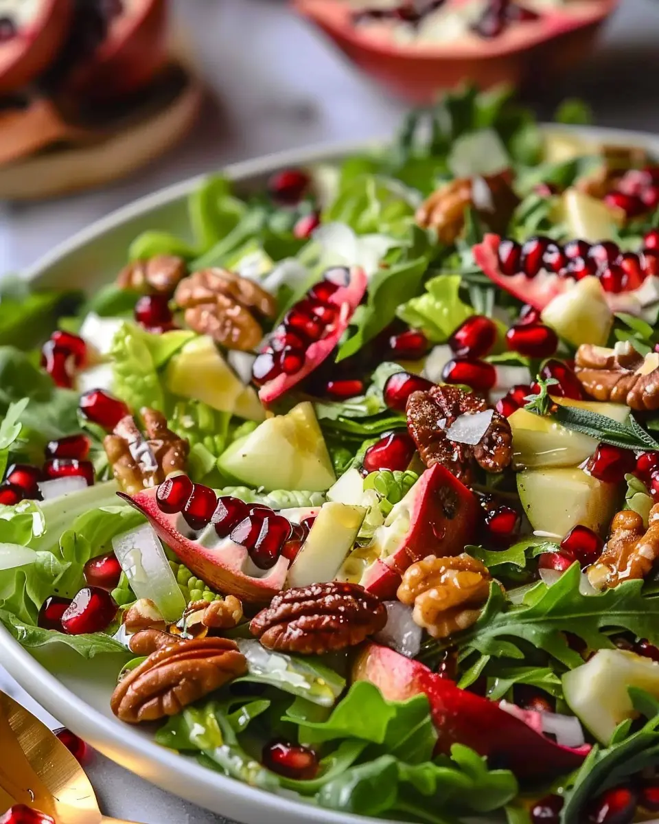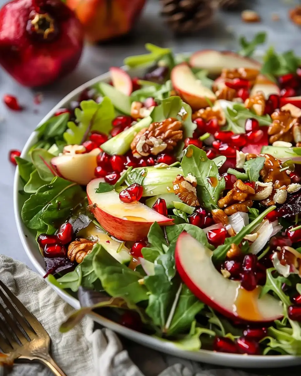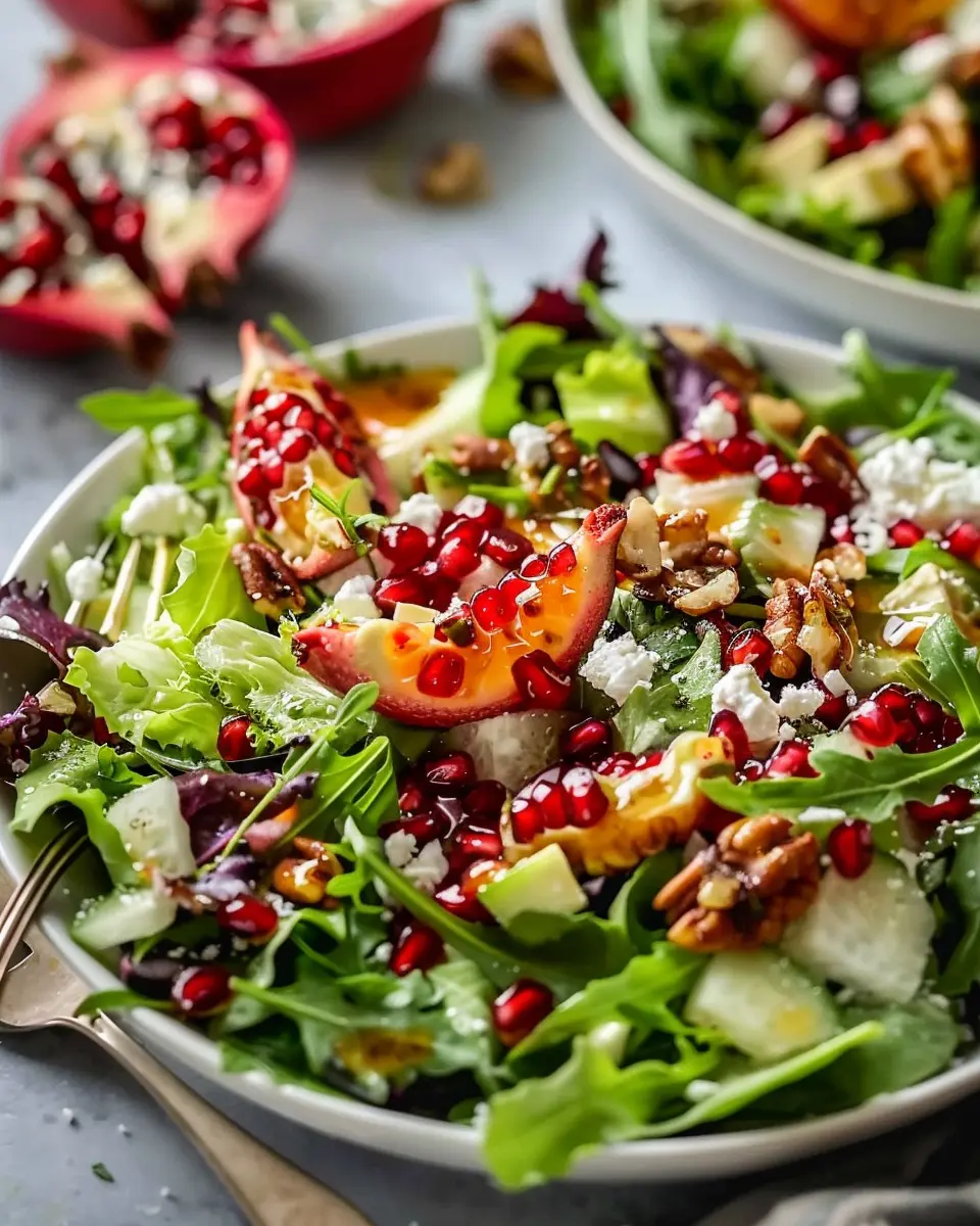 First and foremost, the pomegranate is not just a stunning centerpiece for your salad; it’s also a powerhouse of nutrition. Rich in antioxidants, vitamins, and anti-inflammatory properties, pomegranates are celebrated for their health benefits. According to studies by the American Journal of Clinical Nutrition, regular consumption of pomegranates may improve heart health and reduce the risk of certain diseases. So, while you’re enjoying this beautiful dish, you’re also doing your body a favor!