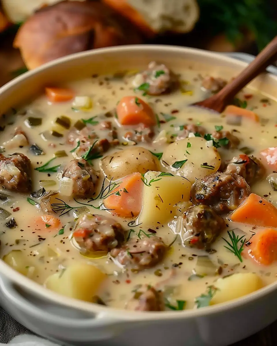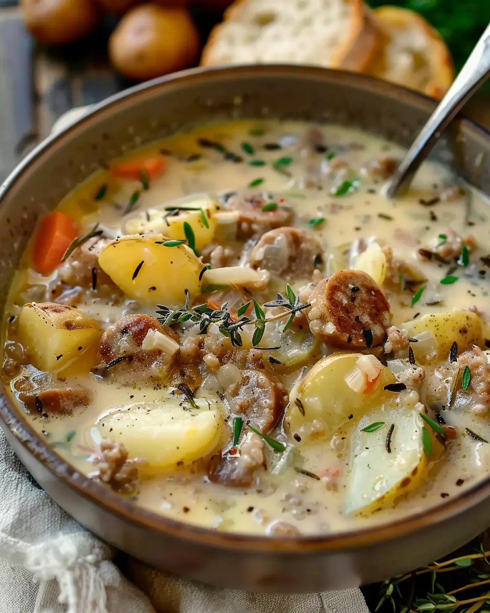 A hearty and comforting chowder made with potatoes and sausage, perfect for chilly days.