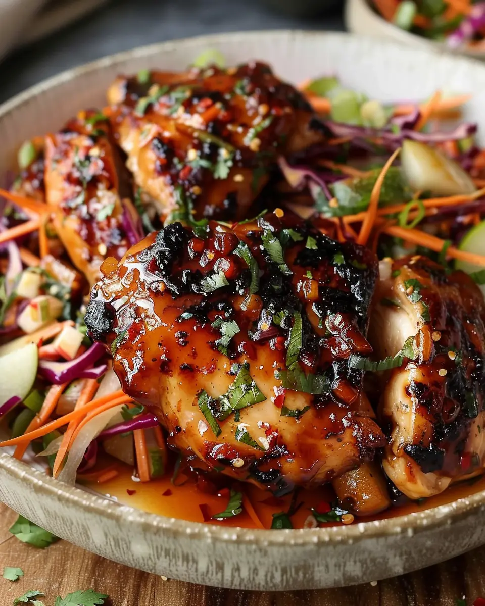 Crisp Autumn Slaw: This is a perfect match for your main dish, with its crunchy texture and vibrant colors. The slaw’s tangy dressing beautifully balances the sweetness of the chicken.