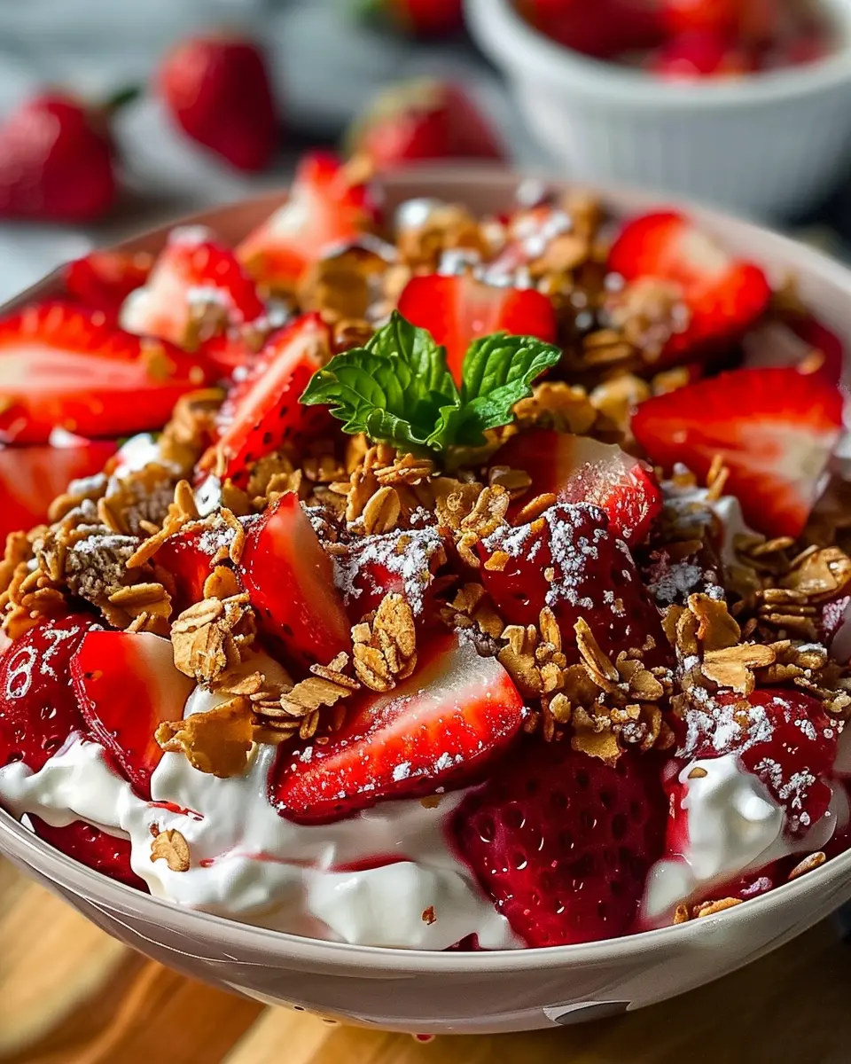 - In a large bowl, combine sliced strawberries and powdered sugar. Let sit for 15 minutes to release juices.