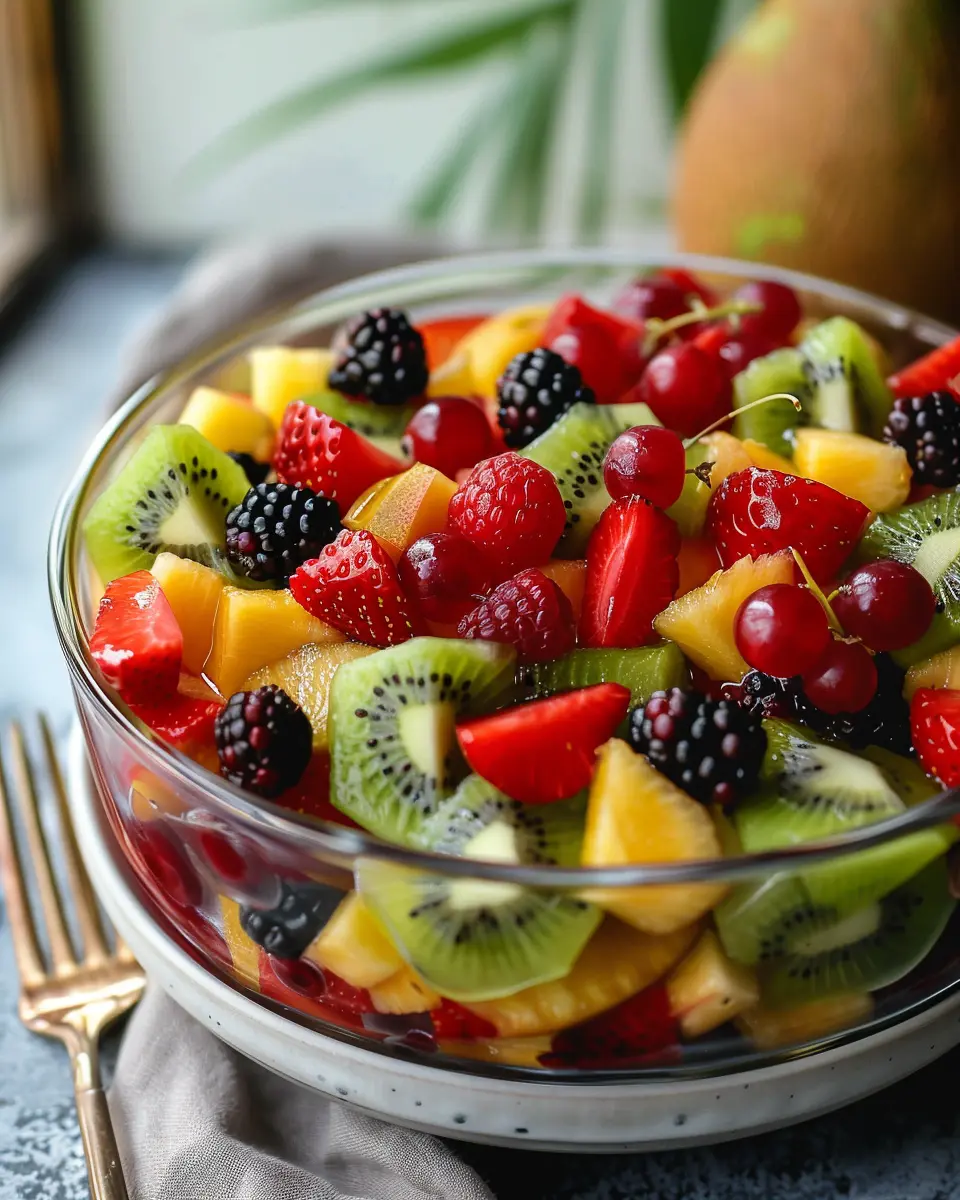 One serving of this refreshing salad contains approximately 150 calories, depending on the specific fruits used. The beauty of this dish lies in its variety—substituting different fruits can help manage those numbers if you’re counting calories.